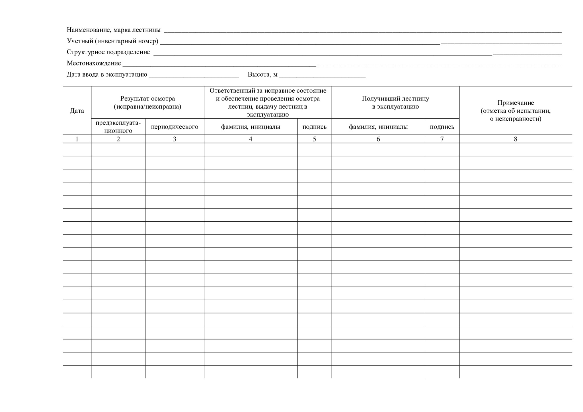 2.28. Журнал учета и осмотра лестниц (прошнурован, пронумерован, 35 листов)