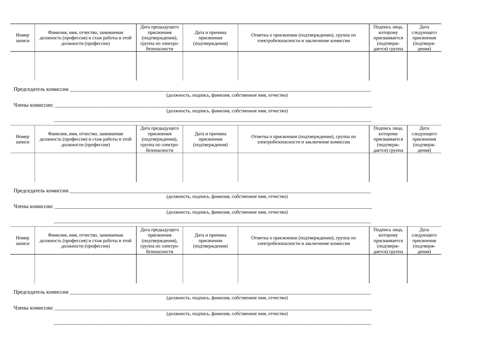 3. Дата предыдущего присвоения (подтверждения), группа по электробезопасности