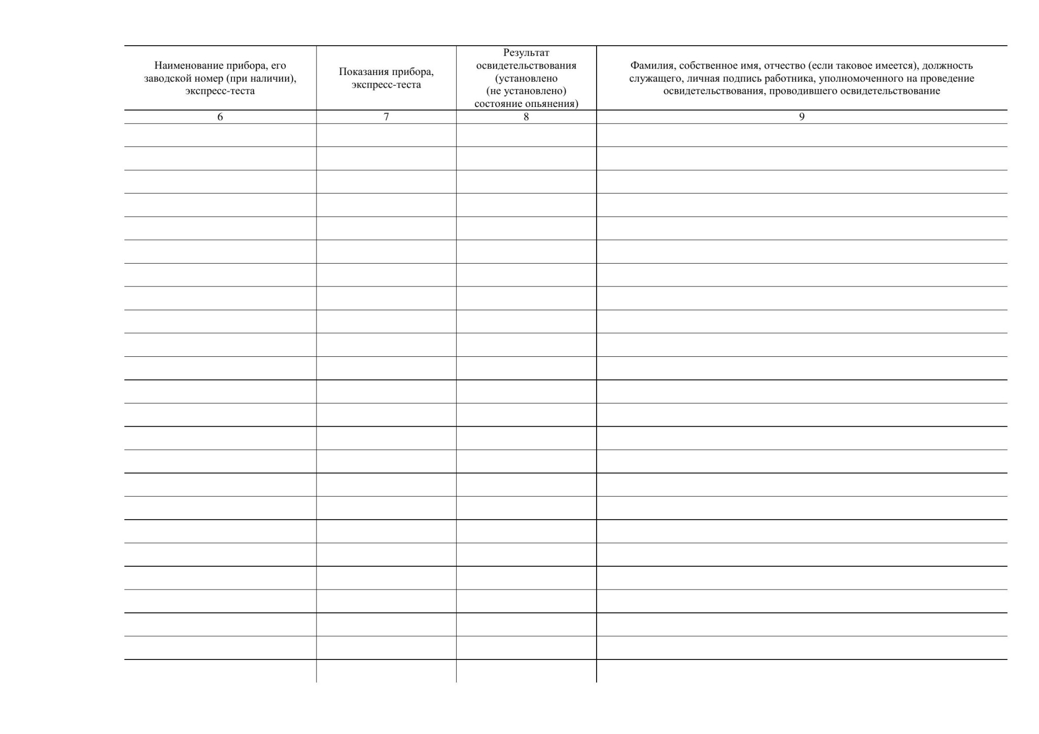 9. Фамилия, собственное имя, отчество (если таковое имеется), должность служащего, личная подпись работника, уполномоченного на проведение освидетельствования, проводившего освидетельствование