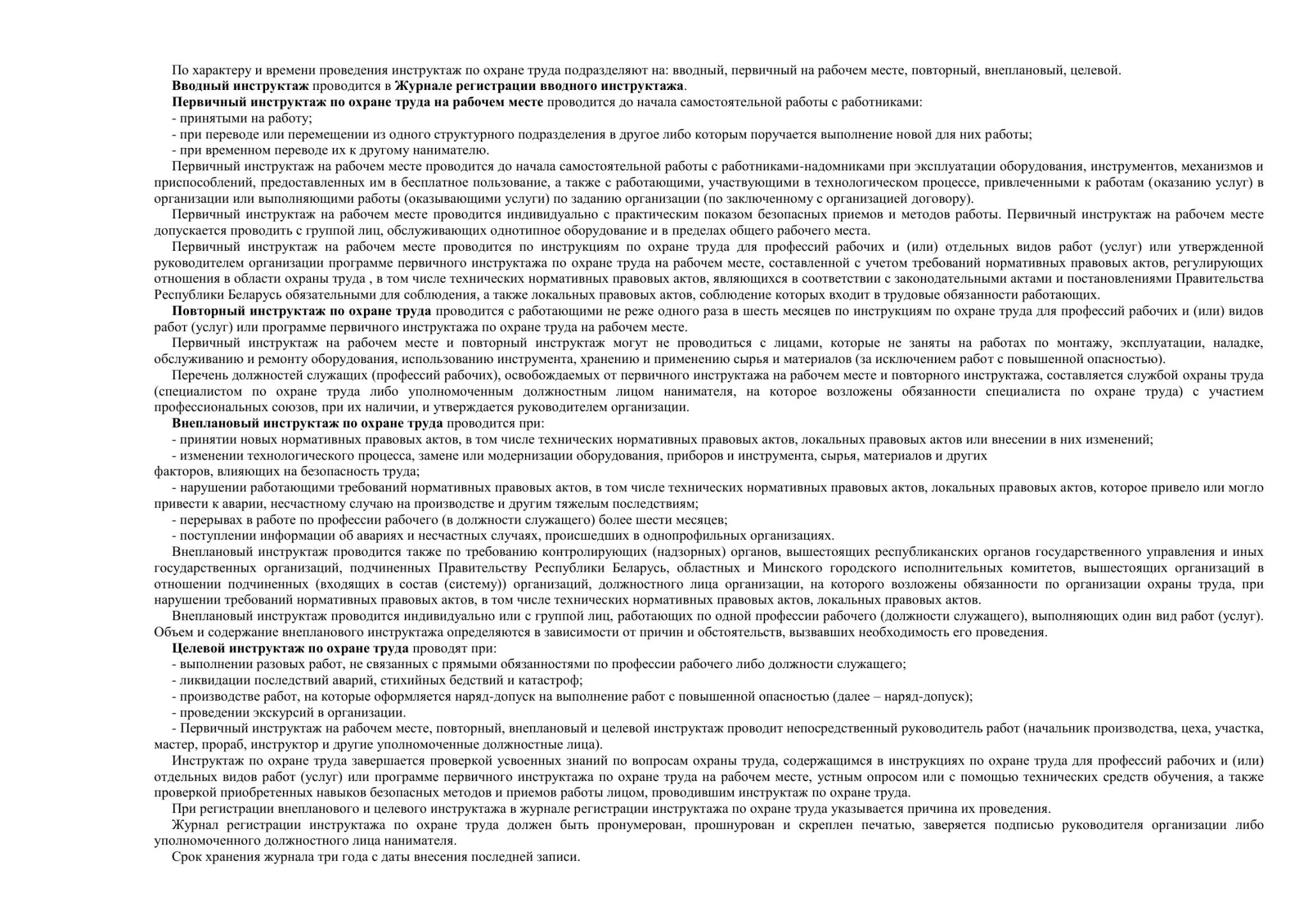Журнал изготовлен согласно Приложению 3 к Постановлению Министерства труда и социальной защиты Республики Беларусь №175 от 28 ноября 2008 г. "О порядке обучения, стажировки, инструктажа и проверки знаний работающих по вопросам охраны труда" (в редакции Постановления №54 от 29 мая 2020 г.).