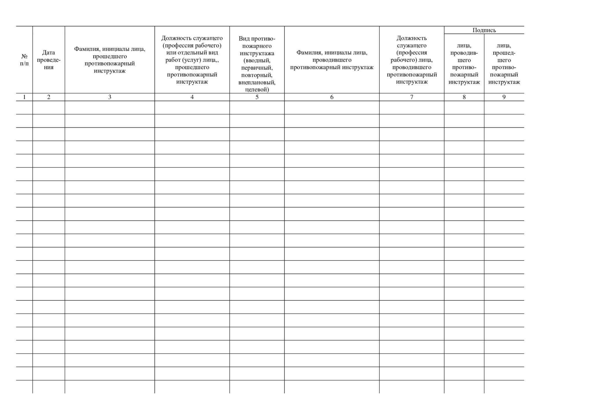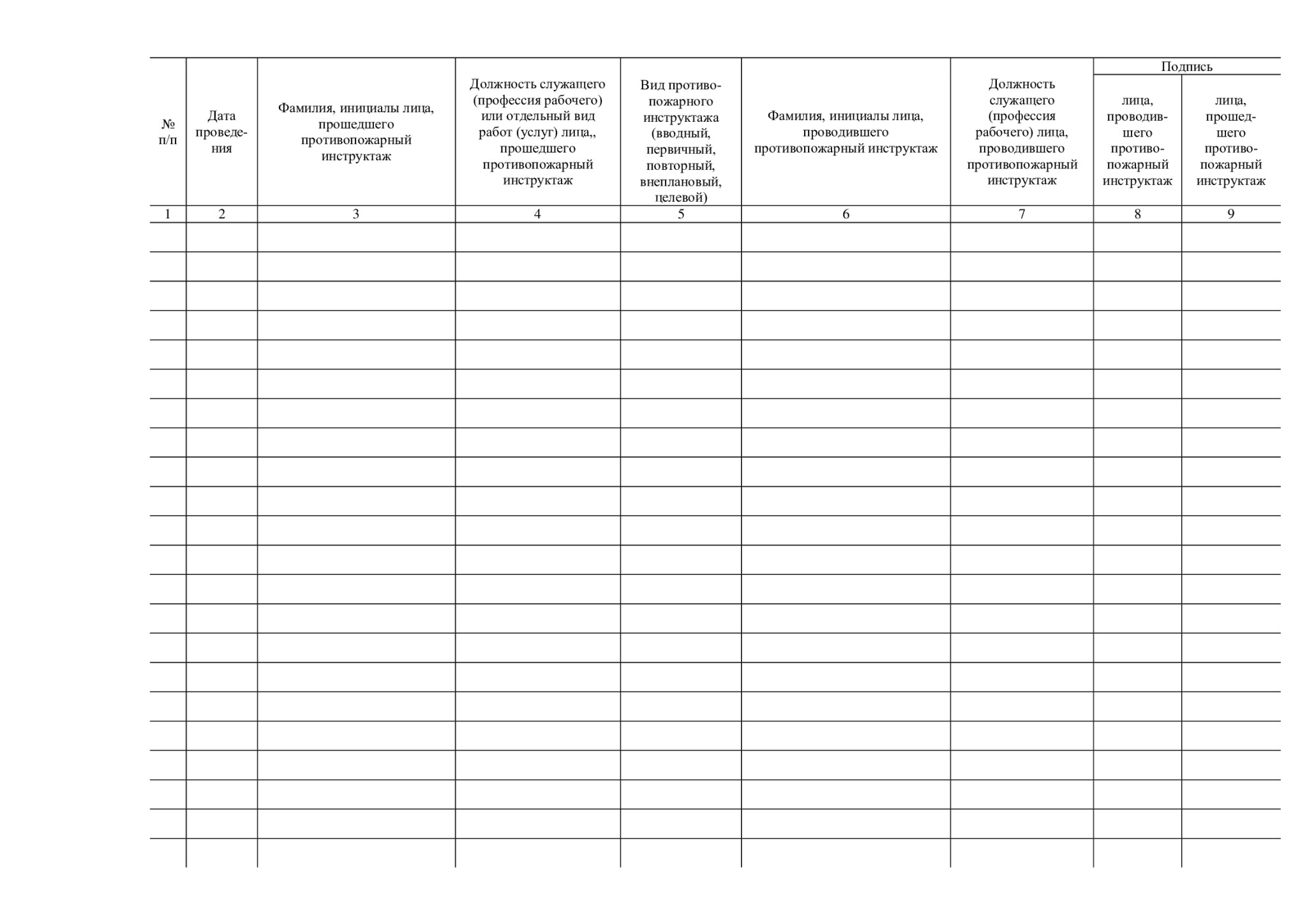 9. Подпись / лица, прошедшего противопожарный инструктаж