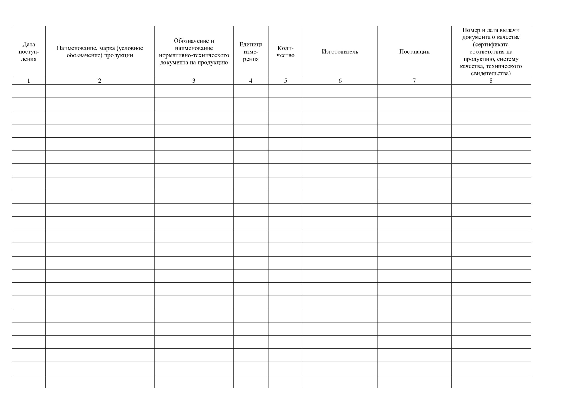 Журнал изготовлен согласно Приложения Б СТБ 1306-2002 "Строительство. Входной контроль продукции."