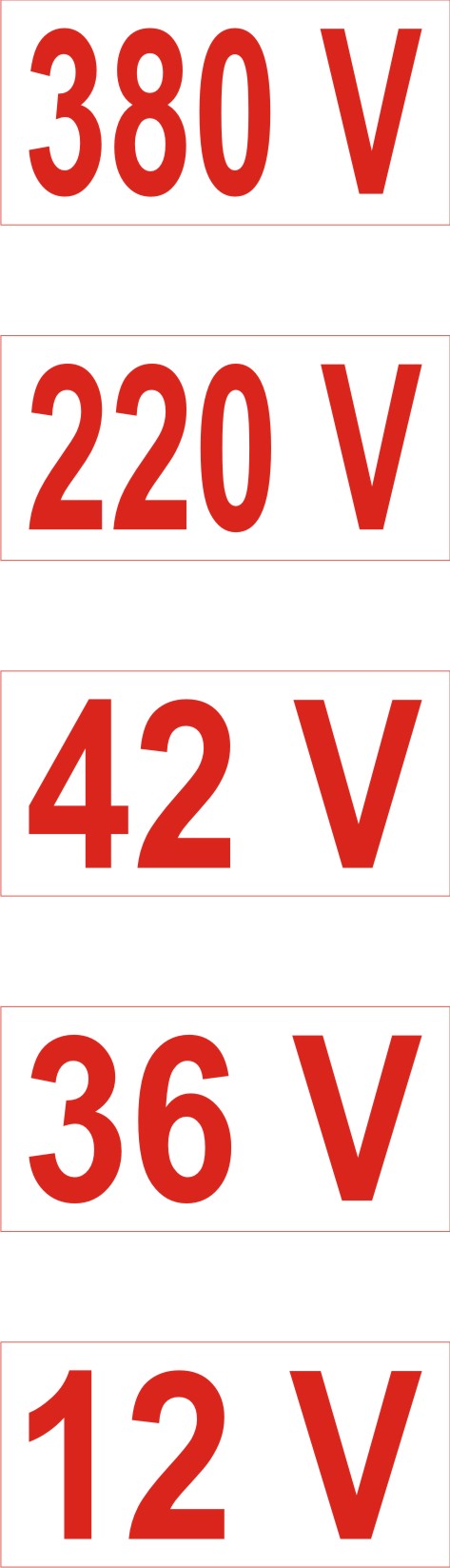 4.36. 12В, 36В, 42В, 220В, 380В атрибуты Наклейка 25х40 мм 0руб. Количество Добавить в корзину Описание Размер каждого знака 25х40 мм. Другие размеры под заказ. Знаки можно заказывать по отдельности в любом количестве.